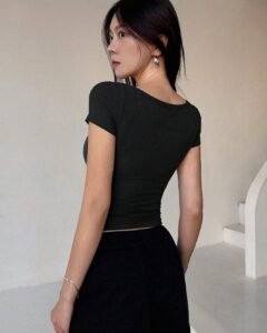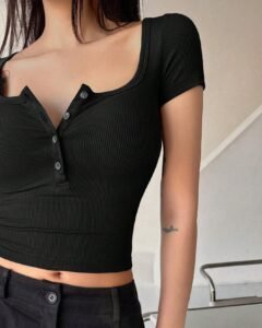 Camiseta De Punto Acanalado De Media Tapeta Con Botones