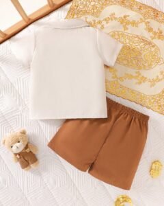 Chaqueta de punto con cuello de solapa de manga corta con pantalones cortos marrones