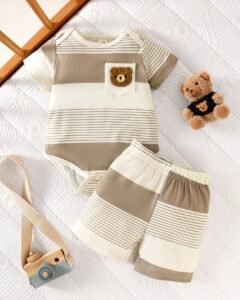 Conjunto básico para recién nacido niño, parte superior de tela texturizada