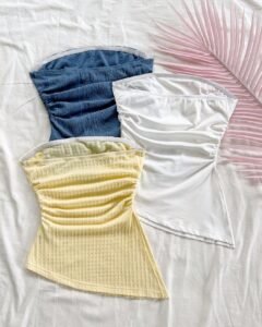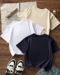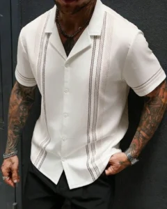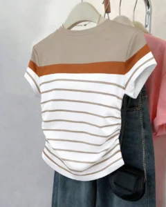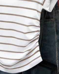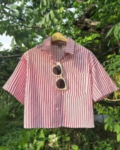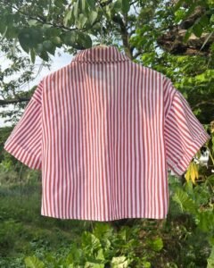 Camisa corta casual y holgada de mujer con rayas y mangas enrollables