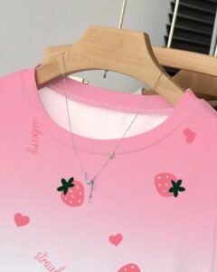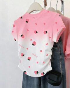 Camiseta ajustada de manga con volantes en degradado con estampado de corazón