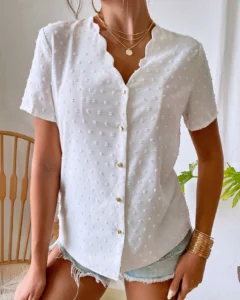 Blusa de mujer con Top con acabado de puntitos suizos y dobladillo