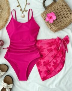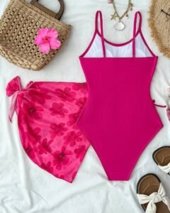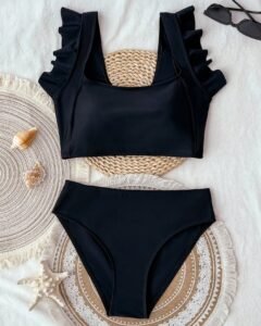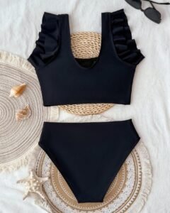 Conjunto de 2 piezas de traje de baño simple con mangas cortas