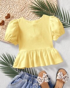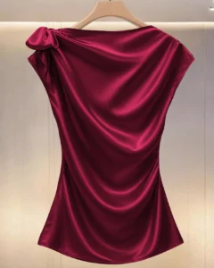 Blusa de satén de unicolor con pliegues y lazo en la cintura