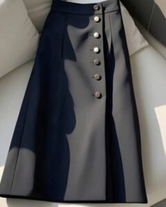 Falda de talle alto con diseño de botones, elástica en la cintura y campana