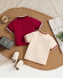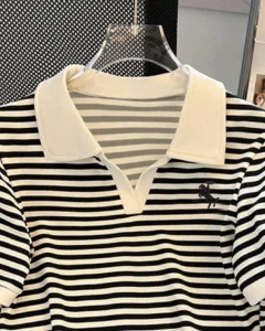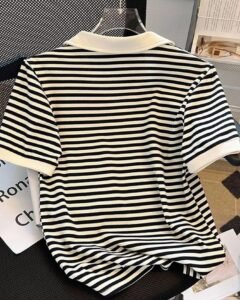 Camiseta de manga corta con cuello de polo a rayas casual