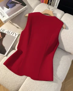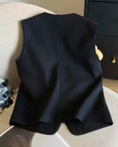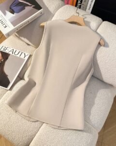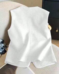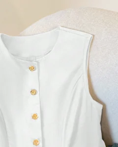 Blusa elegante de botones con parte delantera sólida y sin mangas