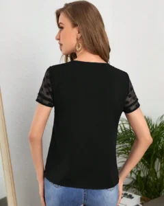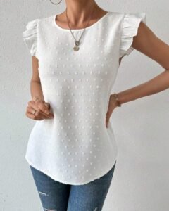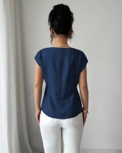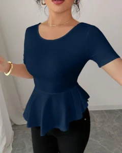 Blusa de mujer de verano de diseño asimétrico con cuello redondo