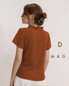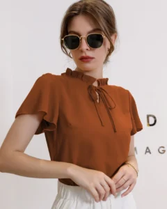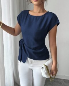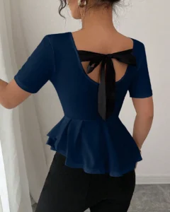 Blusa casual con lazo en la espalda y dobladillo fruncido en la cintura