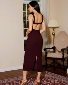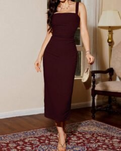 Vestido elegante ajustado con cuello cuadrado, cintura fruncida
