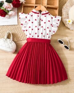 Vestido de niña con patrón de corazones y borde con empalmado