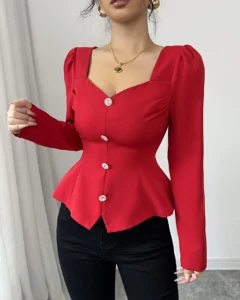 Blusa de mujer de estilo francés elegante de unicolor