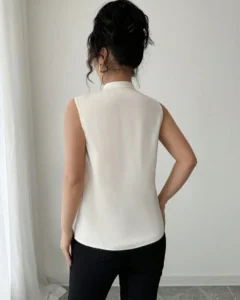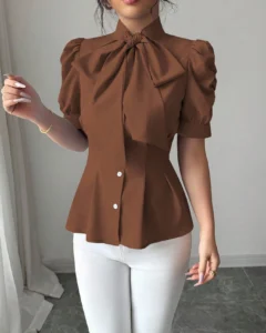 Blusa elegante de mujer con cuello de corbata y cintura de unicolor