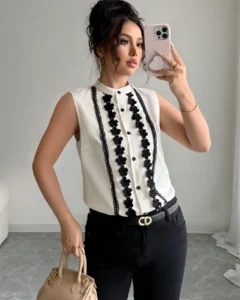 Blusa con aplicaciones de encaje negro sin mangas