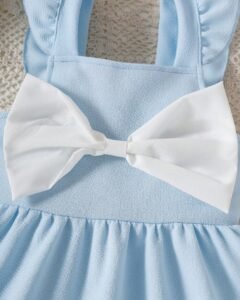 Vestido blanco elegante para niña con gran lazo y ribete de cinta ondulada