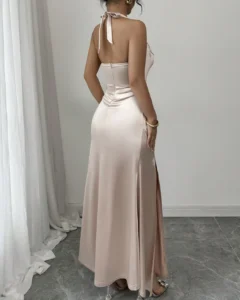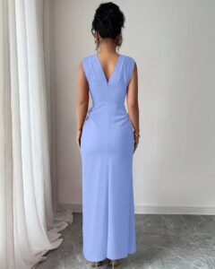 Vestido formal de mujer, vestido plisado con abertura estilizador