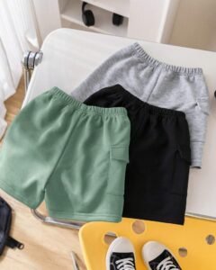 pantalone corto de punto con decoración de parche de bolsillo