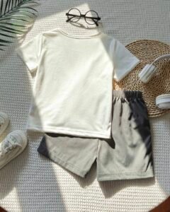 camiseta blanca + pantalones cortos militares verde