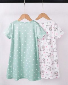 Pijama para niña con estampado de ovejas lindas, color rosa y gris, diseño minimalista