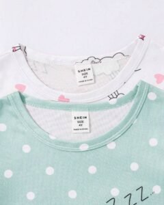 Conjunto de pijama con estampa de vaca y corazón lindo para niña