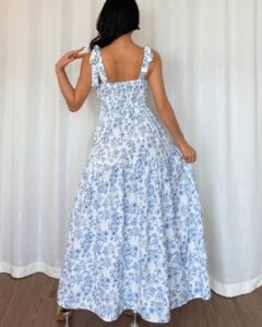 Vestido largo con estampado floral plisado y volantes elegante francés