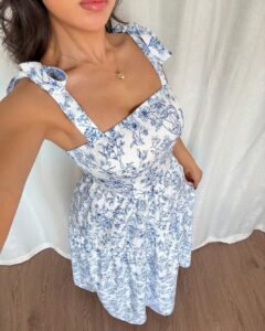 Vestido midi elegante de mujer con cuello de volante de gasa con estampado floral