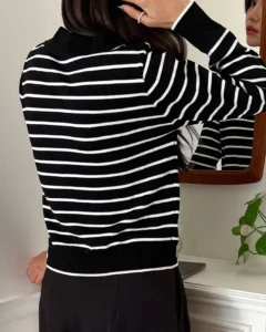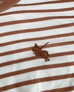 Camiseta de manga larga con cuello redondo, con bordado de caballero y rayas