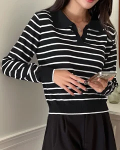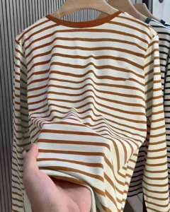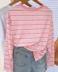 Camiseta de manga larga con cuello redondo, estampado de rayas