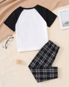 Camiseta de manga corta de cuello redondo y pantalones con patrón