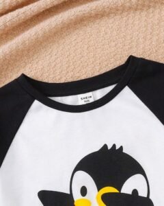 camiseta con estampado de pingüino y pantalones con estampado a cuadros