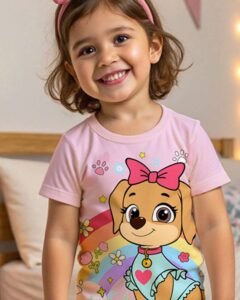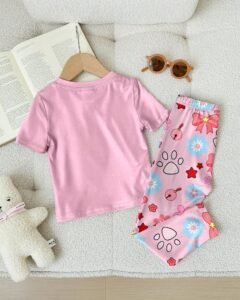 Pijama de niña joven con patrón lindo de cachorro, de ajuste ceñido