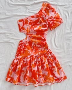 Vestido mini ajustado con un hombro, manga abullonada, bajo asimétrico