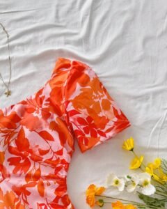 camiseta de manga corta con manga de globo y pantalones con estampado floral