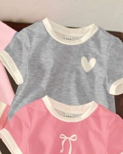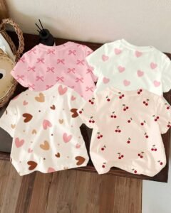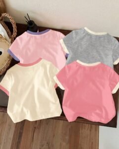 camisetas básicas de manga corta y cuello redondo para niñas