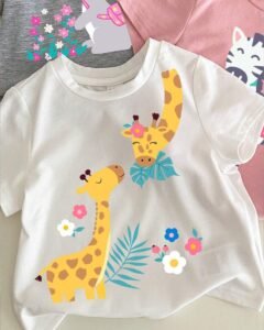 blusa de manga corta con cuello redondo y estampado de animales