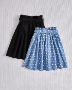 Falda De Lunares Y unicolor De Ajuste Holgado