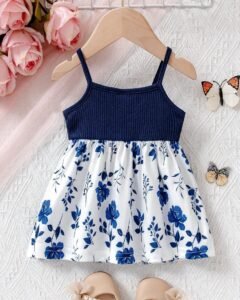 Vestido de bebé niña casual de uso diario cómodo con estampado floral diminuto sin mangas