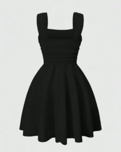 Vestido negro formal elegante y cómodo con volantes y tirantes anchos