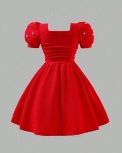 Vestido de punto con cuello cuadrado, mangas abultadas y cuentas