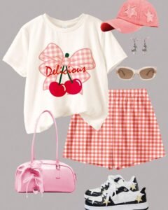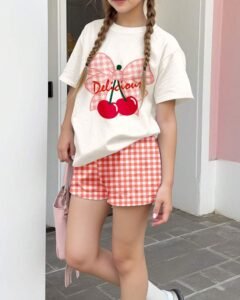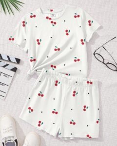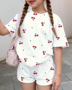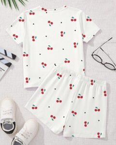 Conjunto informal de 2 piezas con estampado de cerezas en forma de corazón