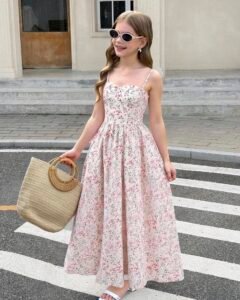 Set de 2 piezas para niña preadolescente: chaleco con patrón de tulipán y falda larga