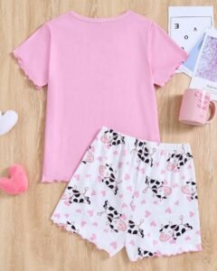 Conjunto de pijama con estampa de vaca y corazón lindo para niña