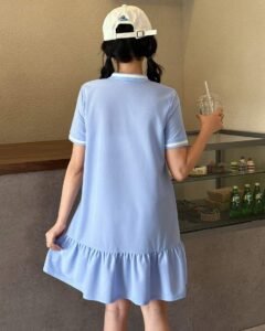 Vestido casual y cómodo de cuello alto con contraste