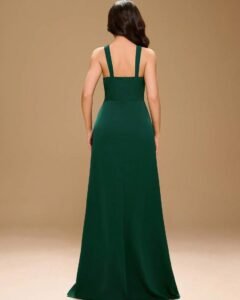 Vestido de fiesta de satén con escote halter y bajo asimétrico