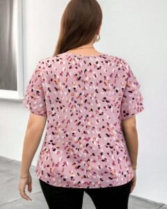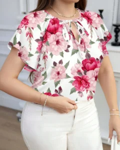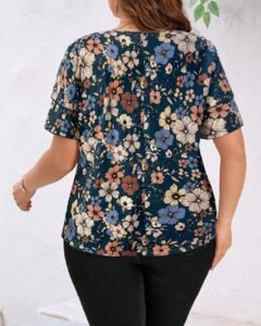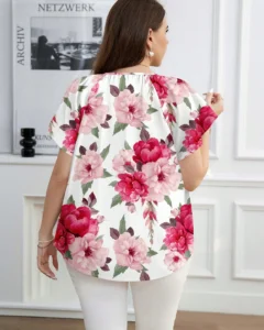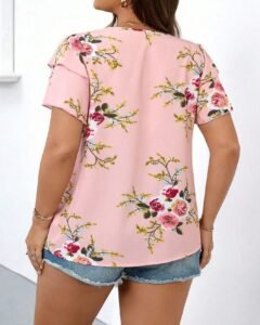 Blusa holgada de manga corta con cuello redondo y estampado de rosas