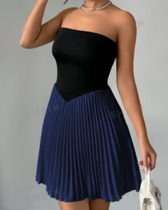 Vestido bandeau negro con abertura en el bajo de corte ajustado