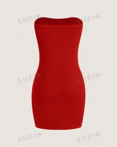 Vestido bandeau ajustado de unicolor para mujer con abertura alta