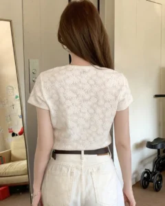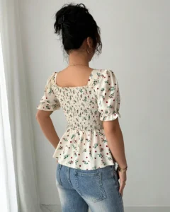 Blusa elegante con botones y ajuste delgado con estampado de flores diminutas