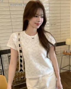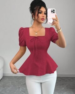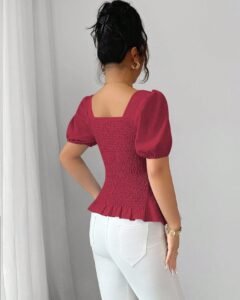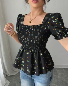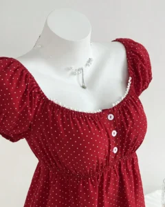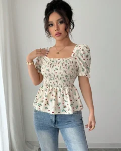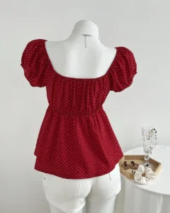 Blusa de cuello cuadrado con estampado de lunares y manga corta