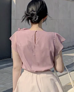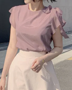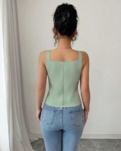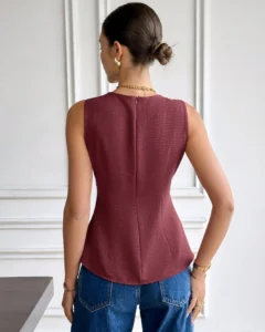 Blusa sin mangas de cuello redondo y cintura ceñida de unicolor